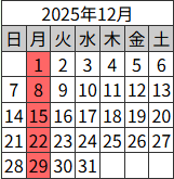 カレンダーの緑の色の日にちは 13:00~24:00 営業